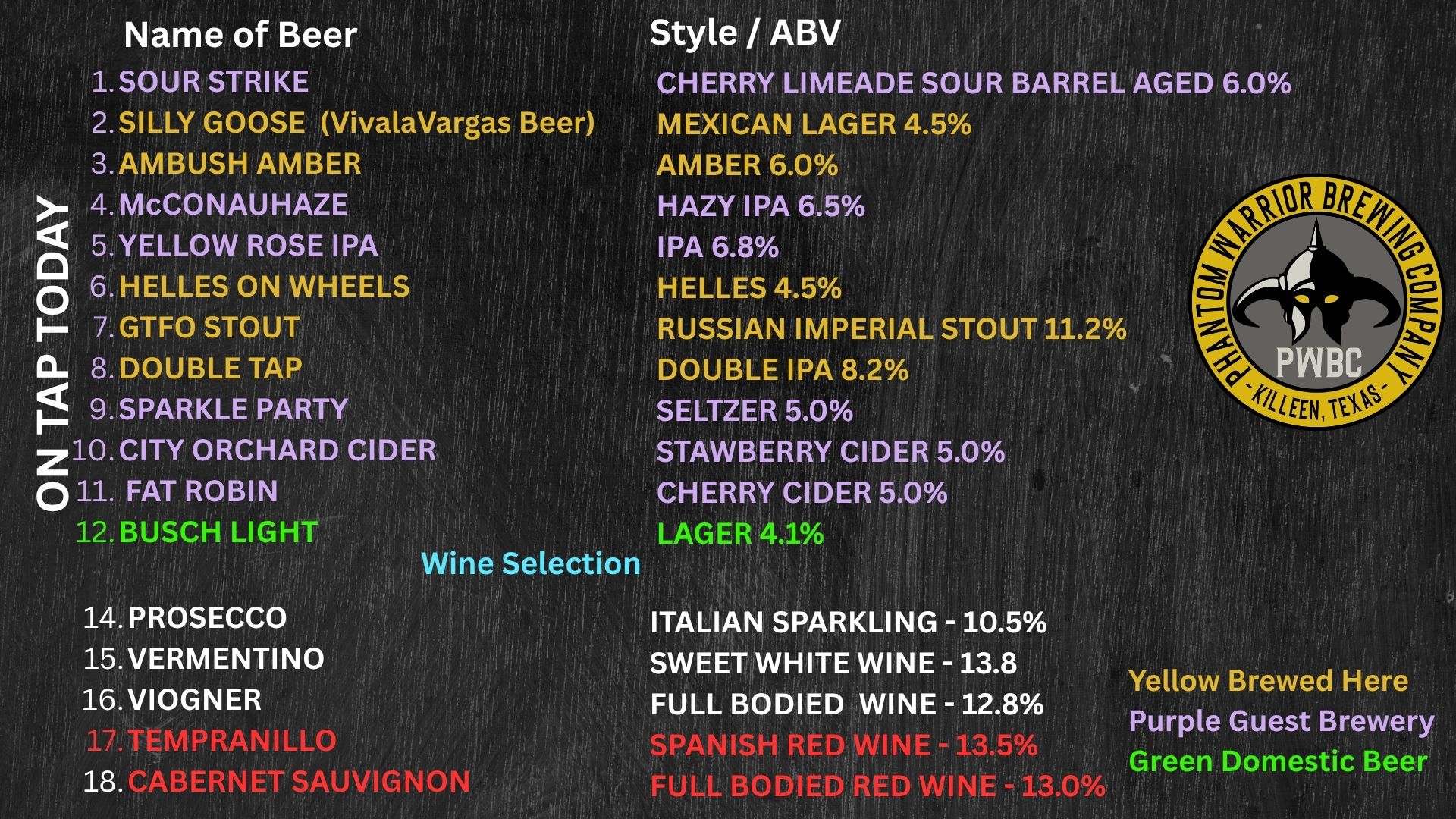 Here's what's on tap